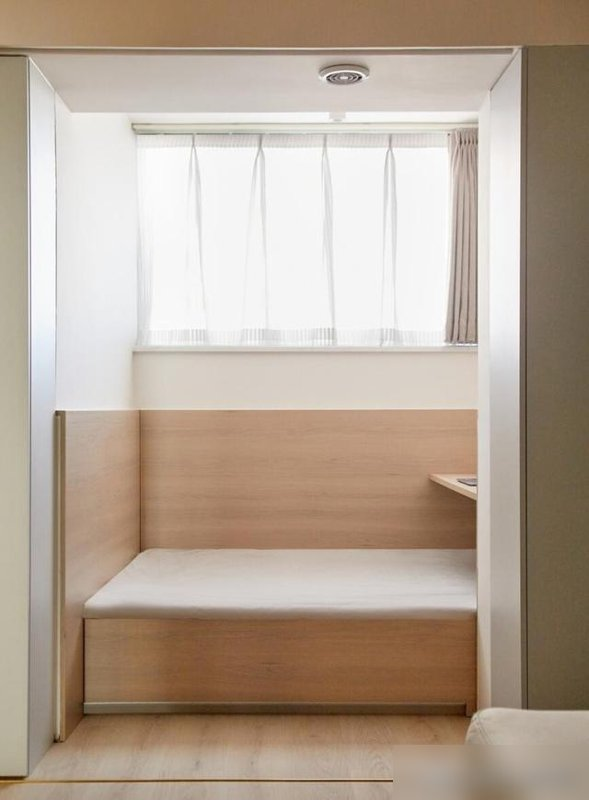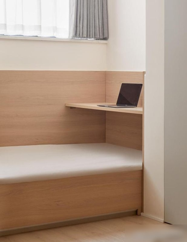 卡座底下藏双人床,角落塞进工作区,休闲办公留宿模式自由切换。