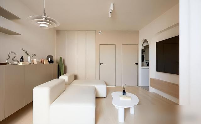小户型最怕越住越挤,他们家却用奶油白打底配弧形线条,进门就让人松口气。