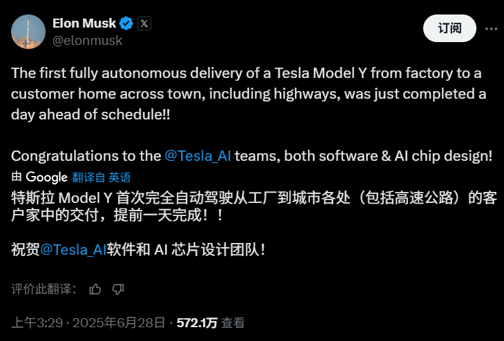 这一系列的进展标志着特斯拉在自动驾驶技术的商业化应用上取得了重大突破。值得注意的是,就在无人驾驶交付的前几天,特斯拉还在奥斯汀启动了无人驾驶出租车(Robotaxi)的内测服务,虽然目前仅限于受邀用户,且副驾驶座上仍配备了一名安全监控员。